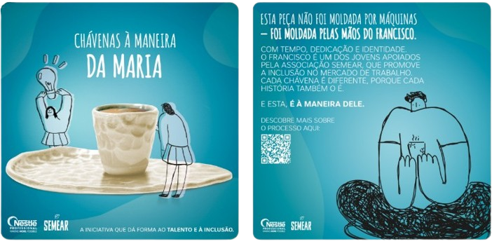 Em parceria com a associação SEMEAR, foram criadas chávenas artesanais únicas, cada uma com a identidade de quem a produziu, mostrando que ser diferente é uma força, não um limite.