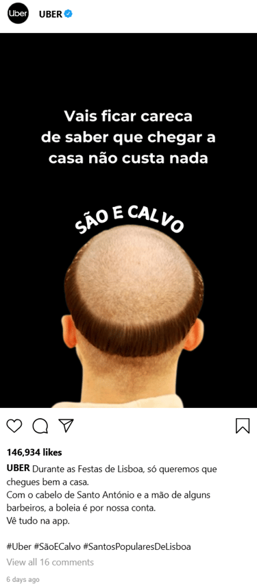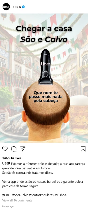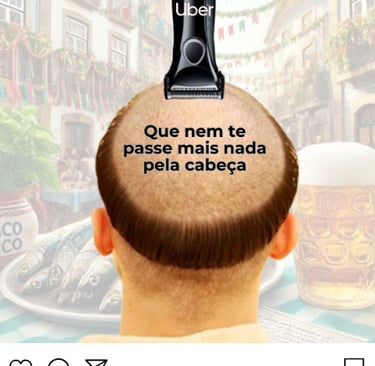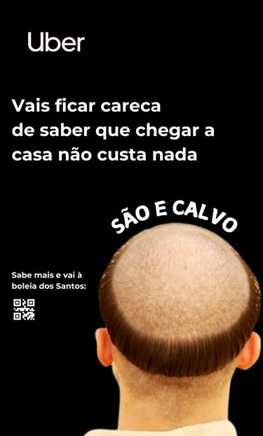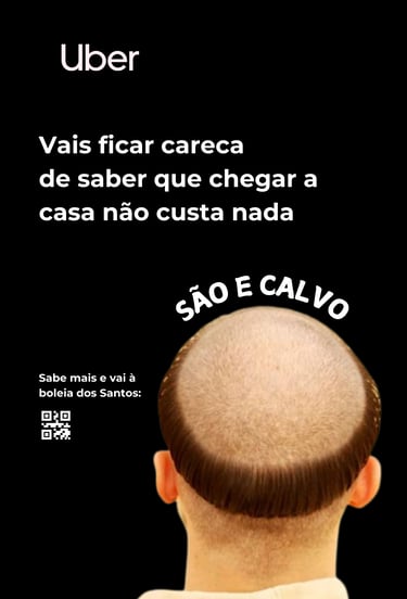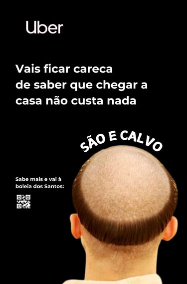 A Uber transforma essa insegurança em segurança, oferecendo boleia de volta a casa a todos os que forem carecas ou raparem o cabelo nas festas.
