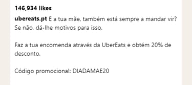 Para não a ouvires mandar vir, manda tu e obtém um desconto de 20% com a Uber Eats.