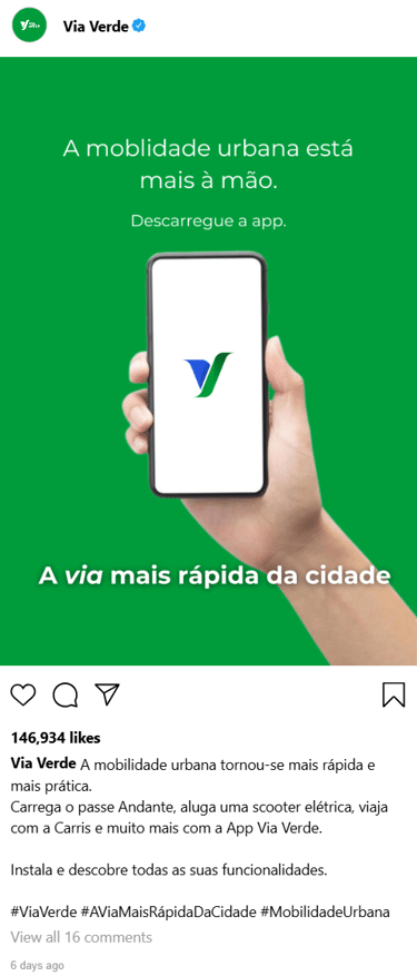 Com esta ativação, queremos proporcionar uma experiência de marca rápida e intuitiva, convidando os utilizadores a descobrirem a Via Verde App e a aderirem no momento.